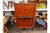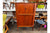 This Teak Corner Bar Cabinet is a great example of thoughtful mid century design, made to fit neatly into spaces that are often overlooked. Its angled shape allows it to sit comfortably in a corner while still offering useful storage. The warm teak finish brings a natural, inviting feel, and the clean lines keep the look balanced and timeless. Inside, shelving and a pullout tray make it easy to store bottles, glassware, or bar essentials without clutter. Whether styled as a bar or used for display and storage, this piece adds character while making smart use of space.